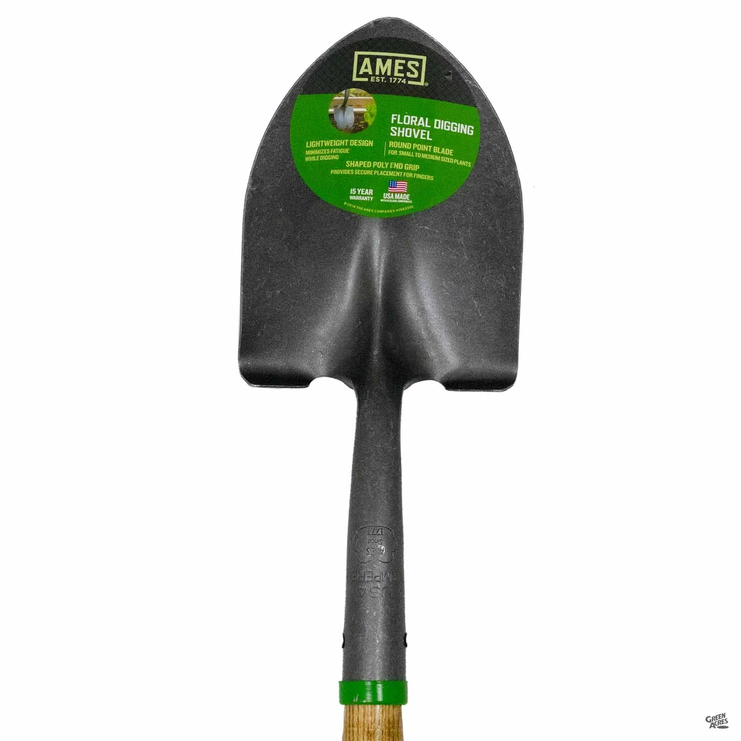 Quality shovel with hardwood handle offers high strength, quality and durability. Tempered steel floral blade is designed for digging in tight spaces.