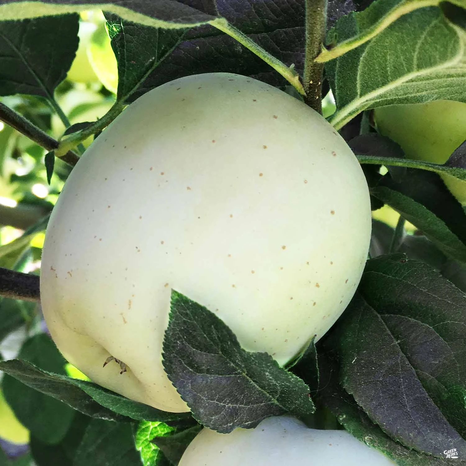 Truly unique apple variety produces completely white fruits with a sweet, sub-acidic flavor in mid summer. Does great in hot climates with low chill, but high chill adaptable. Requires a pollinizer: any