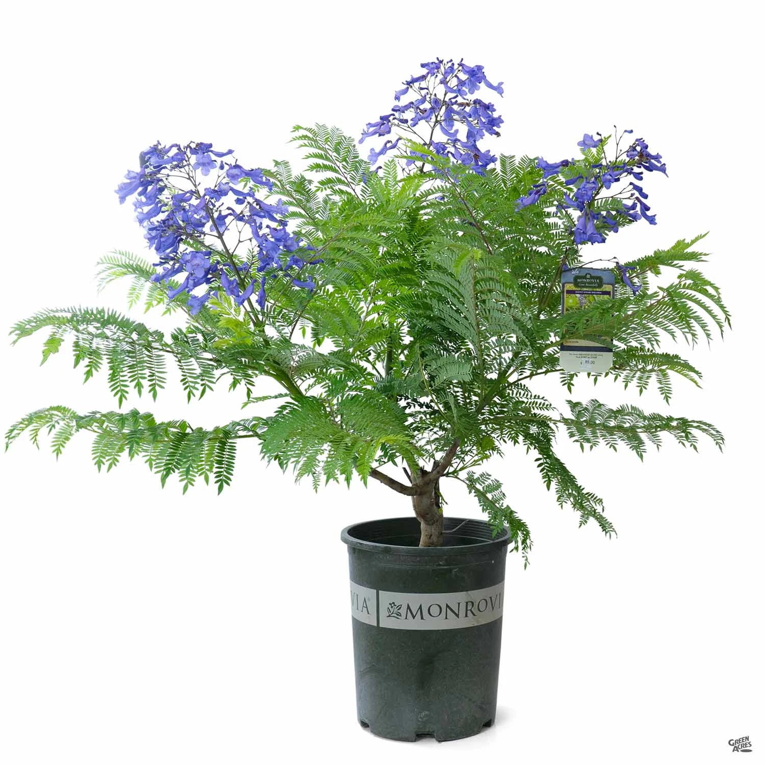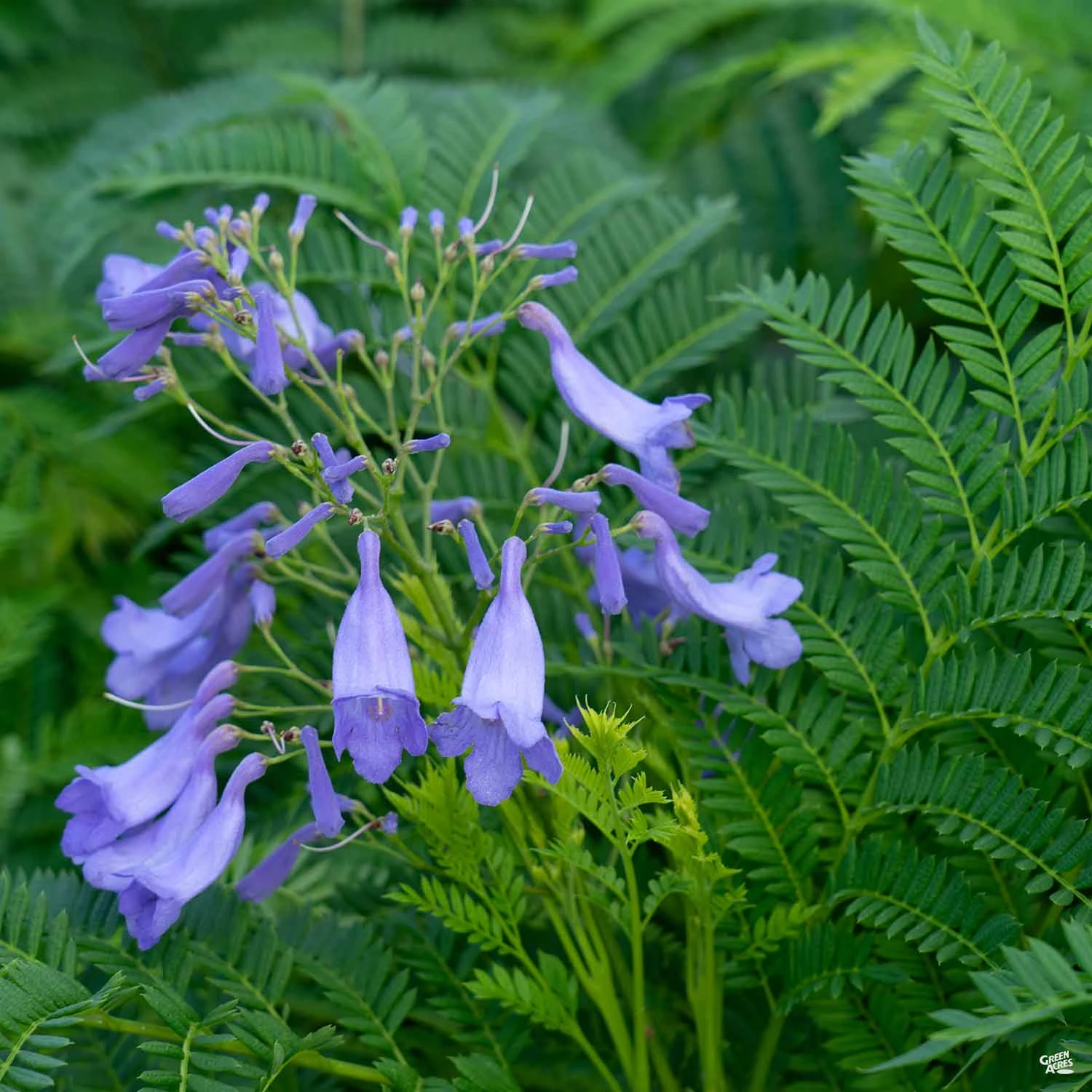 Dwarf form with an upright, rounded habit. Deciduous tree has bright green, fern-like, delicate foliage that is decorated with large, purple, tubular flowers in late spring. Adds a tropical effect to sunny areas. An ideal small accent tree or container plant.