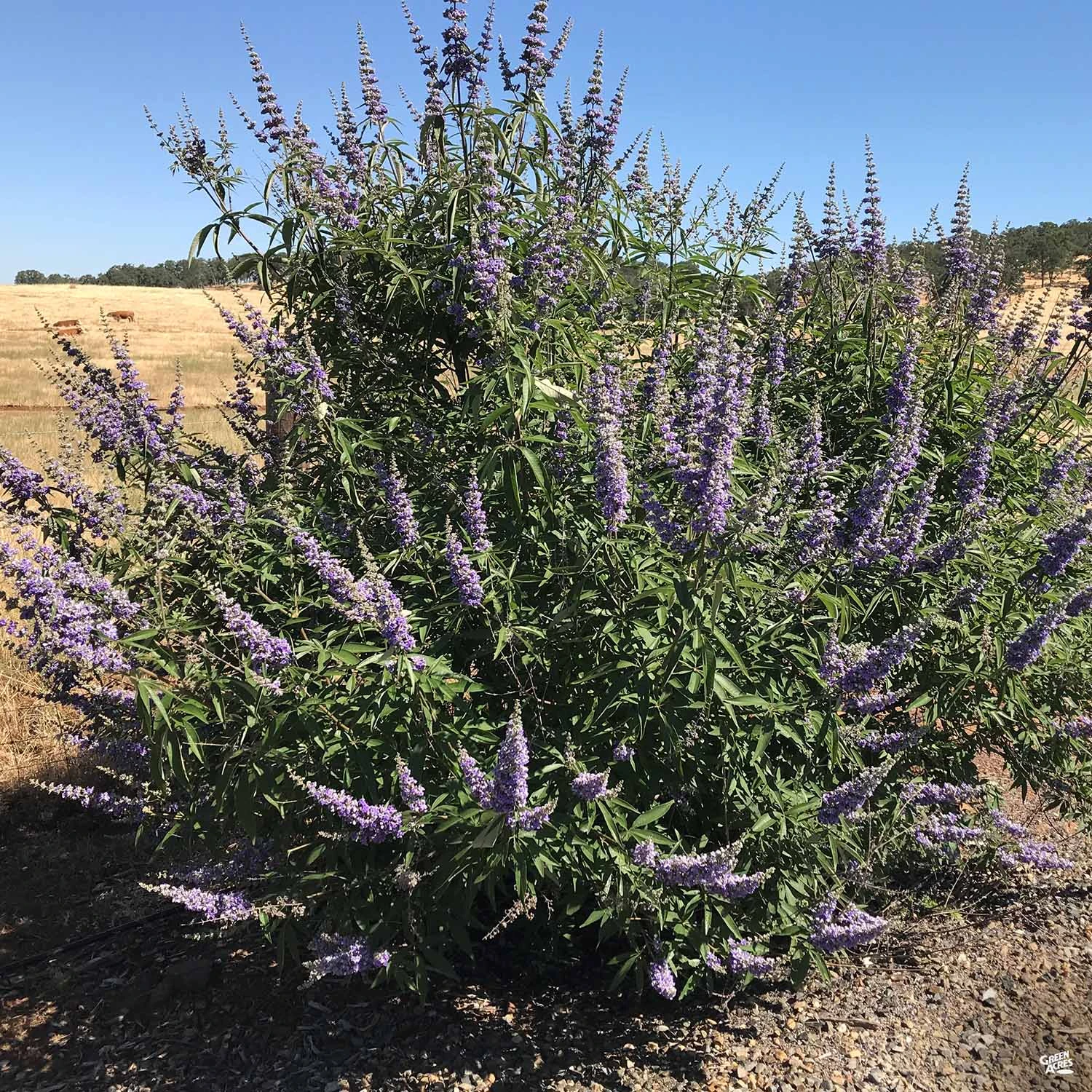 Deciduous multi-trunk tree with spear shaped, fragrant, green leaves. Clusters of fragrant, purple, conical flowers adorn branch tips late summer through early fall. Use as a screen, border or accent. Natural, multi-trunk form.