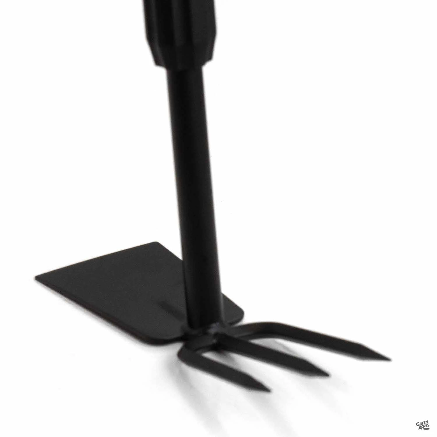 Extendable garden tool has a soil cultivator on one end, and a flat garden hoe on the other.