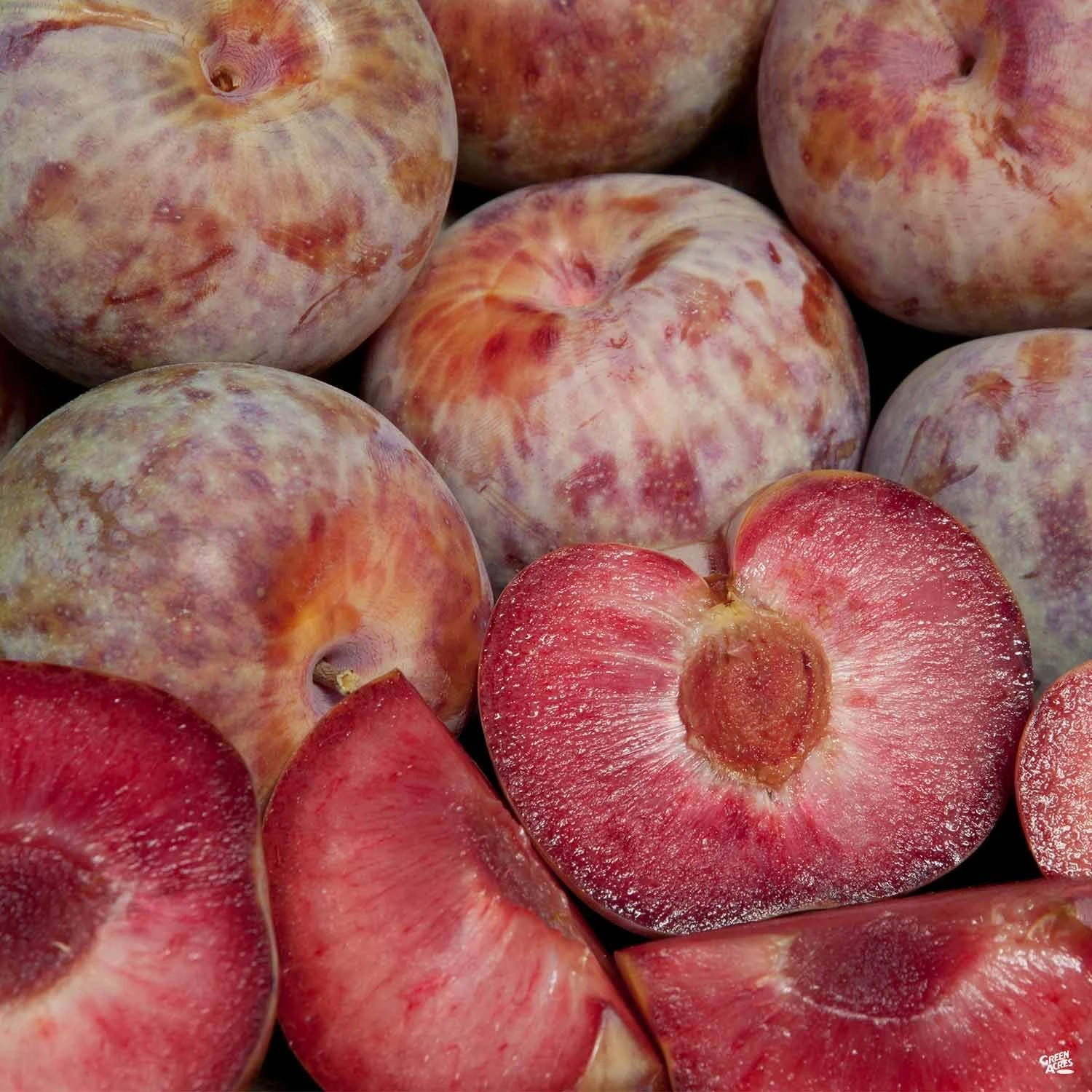Plum-apricot hybrid boasts unique yellow-dappled, maroon fruits in late summer. Requires a pollinizer: