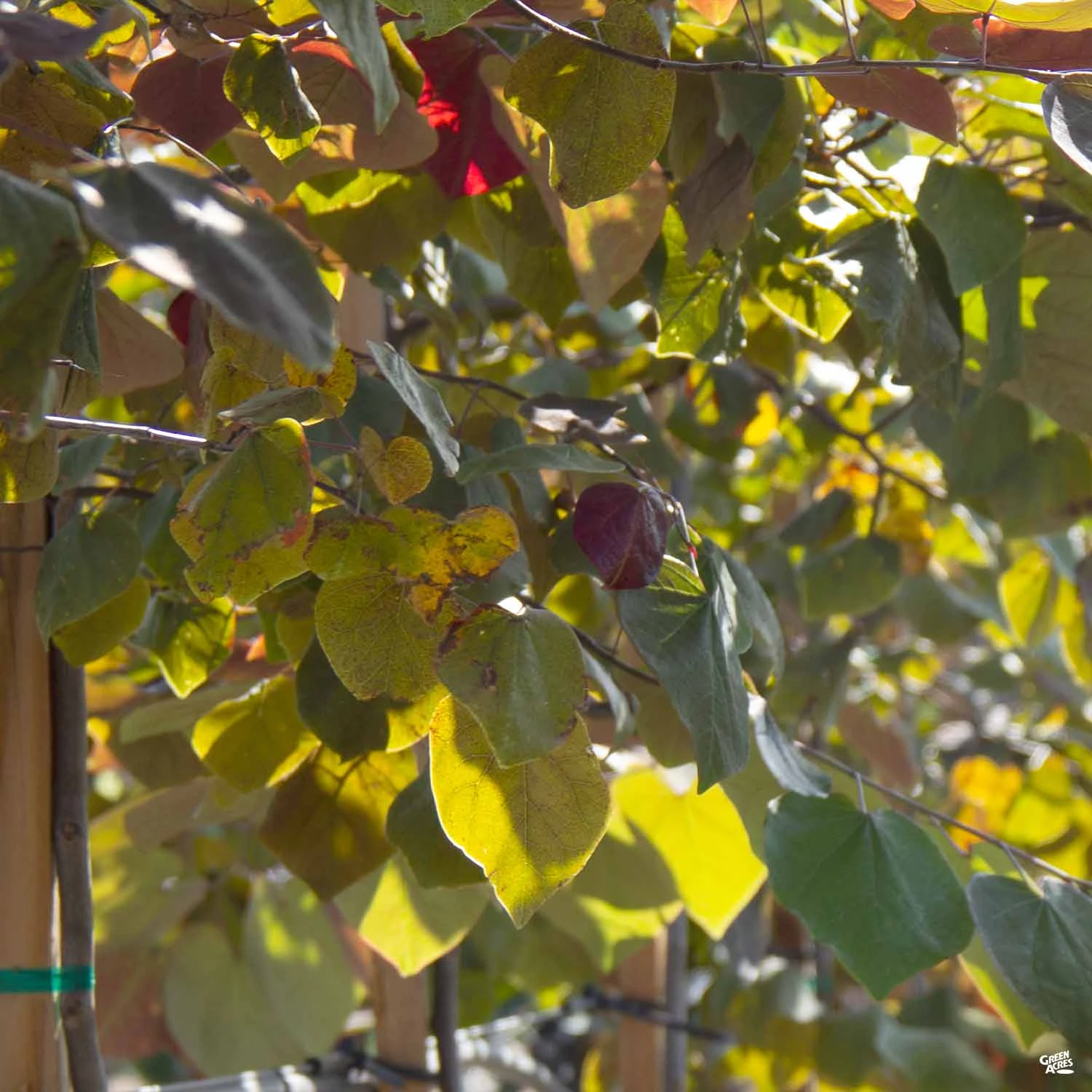 Deciduous tree with a rounded growth habit, ages to have horizontally tiered branches. Deep lavender flower clusters in spring are followed by purple, heart-shaped leaves that mature to maroon-green. Great as a lawn tree, accent or small space tree.