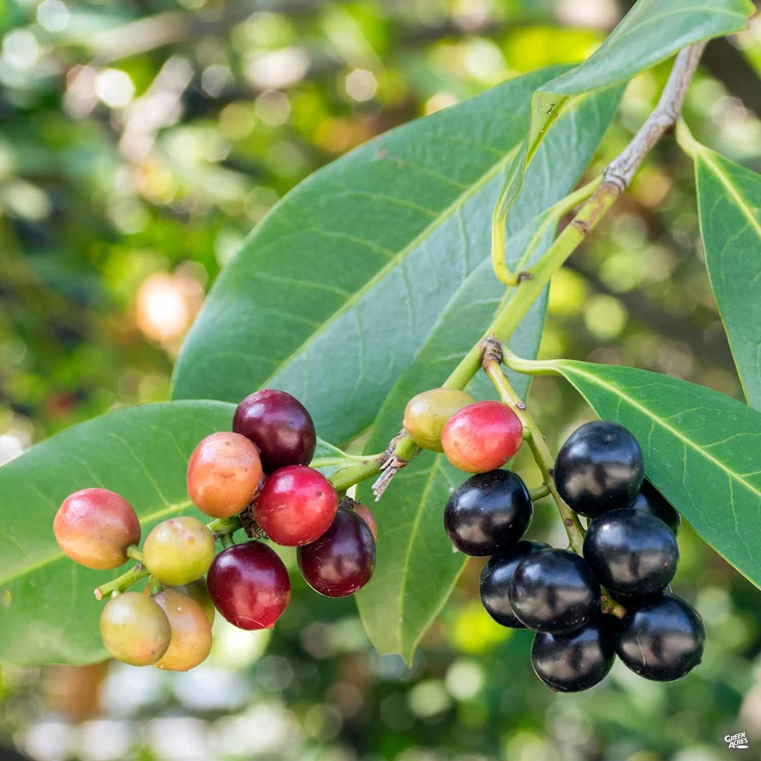 Evergreen tree with long, glossy, dark green foliage. Spring brings fragrant, white flowers on small spikes, followed by black fruits. Makes a great screen, hedge or border.