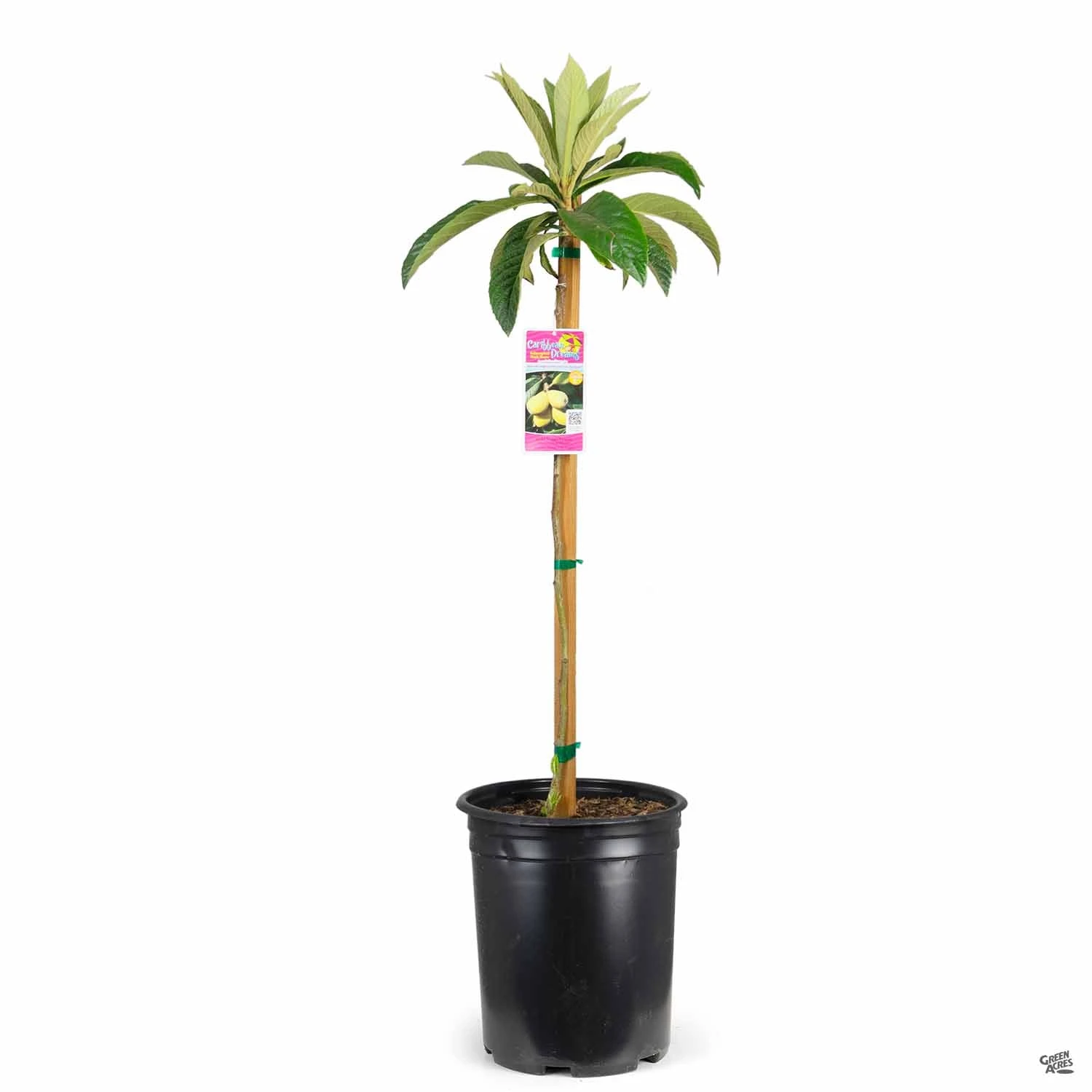 Evergreen, self-fruiting tree or shrub has large, shiny leaves that emerge bright orange-red, slowly maturing to green. White flowers emerge in spring, followed by medium sized, orange, teardrop-shaped fruit with flavors reminiscent of apricot. Vigorous, late-season variety.