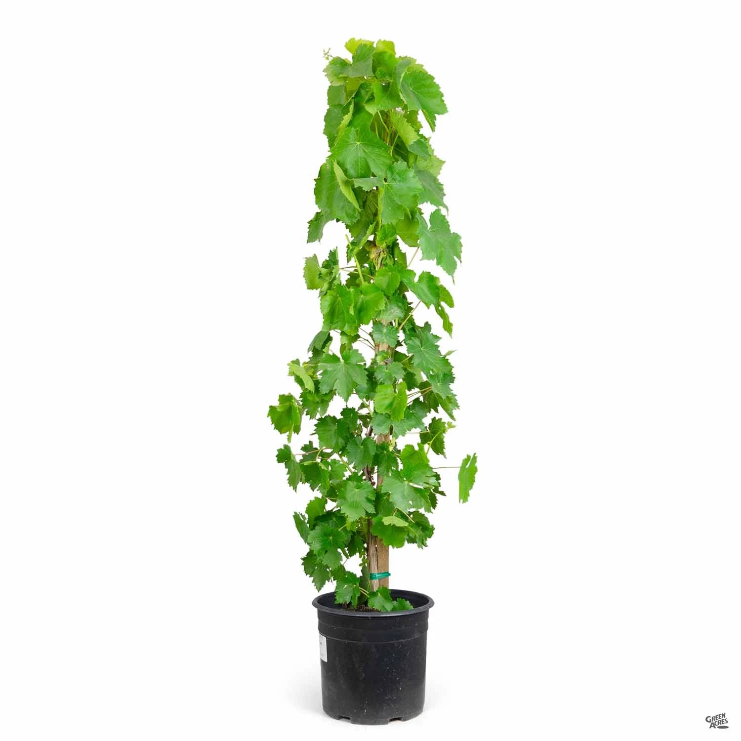 Deciduous fruiting vineĀ with deep green foliage. Grown for fresh eating: enjoy sweet, mild-flavored, red, seedless grapes mid-season. One of the hardiest European grapes!