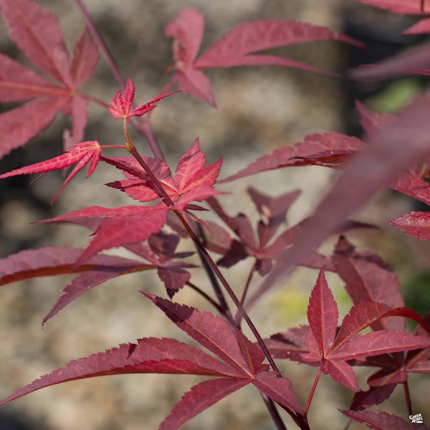 Deciduous tree with an upright, rounded habit. Deeply cut leaves emerge orange-red, age to bronze-green, and turn scarlet in fall. Use as an accent, specimen or container plant.