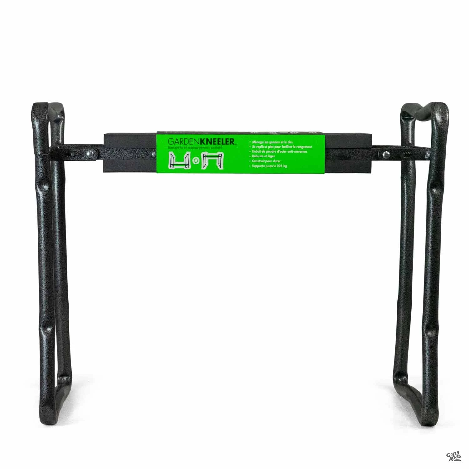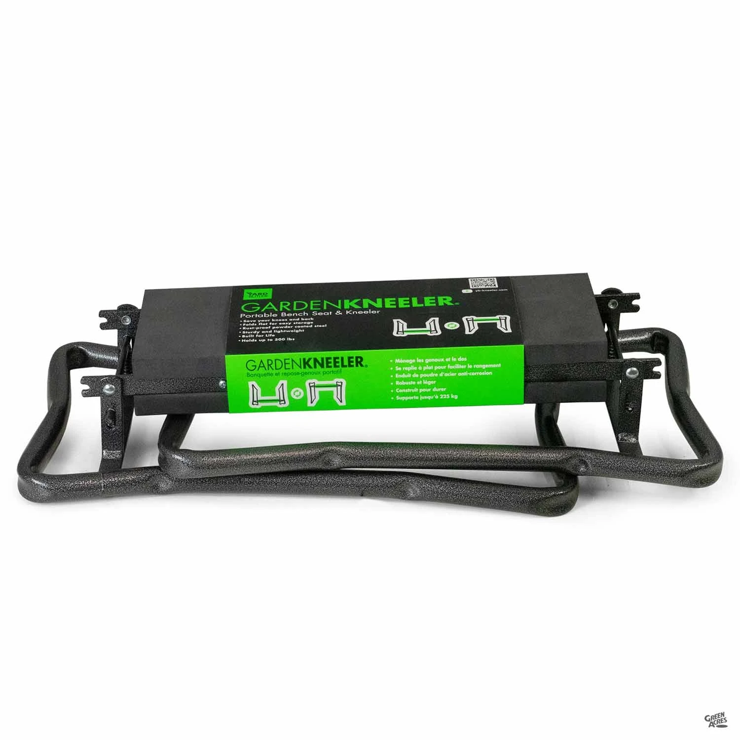 One side is a sturdy, portable bench seat while the other is a comfortable kneeling pad with handles. Perfect for home and garden tasks.