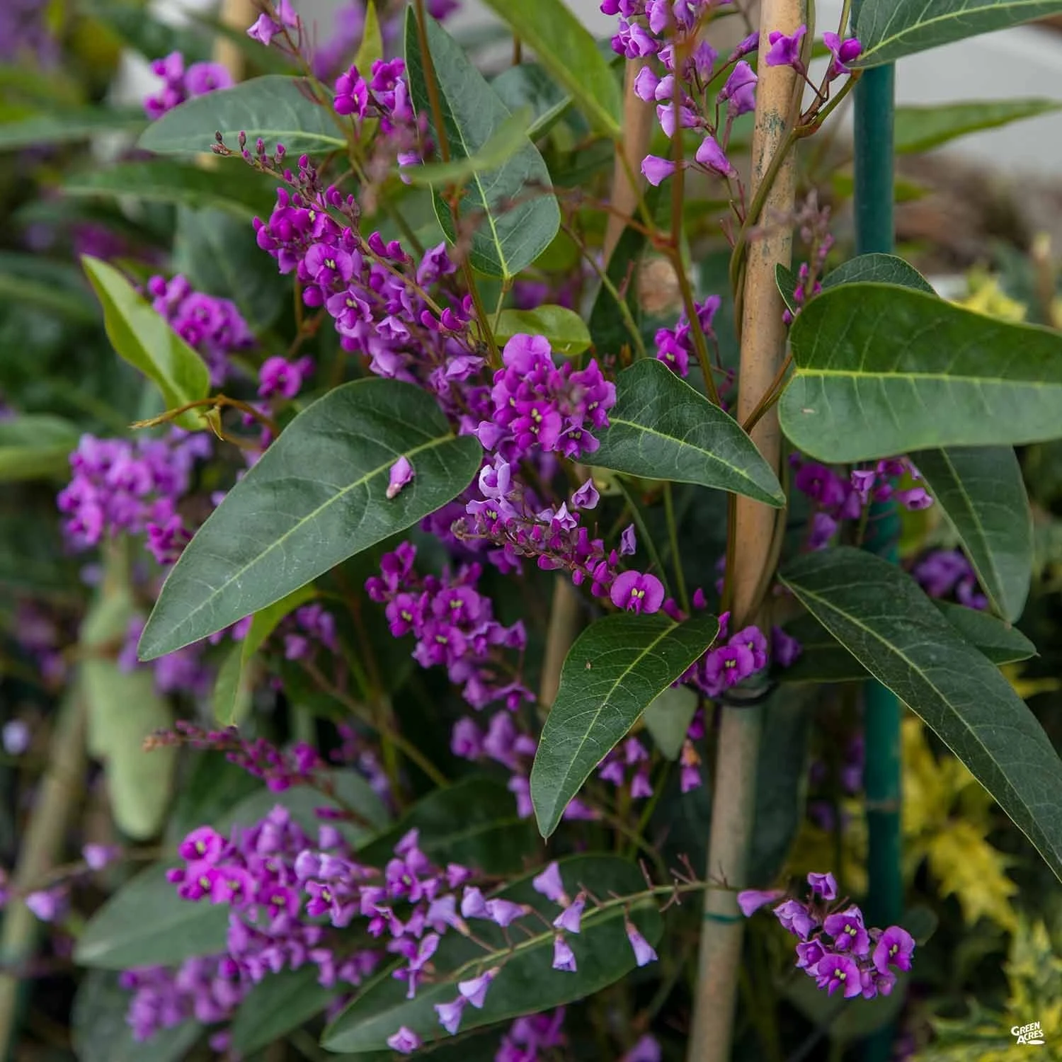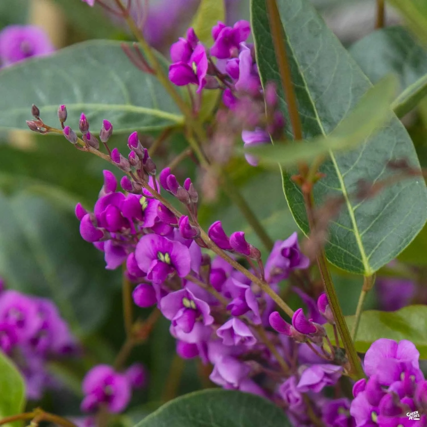 Fragrant flower clusters in shades of soft purples bloom late winter to early spring. Evergreen trailing vine has three-inch-long linear, tear drop shaped leaves. Use as a background plant or informal hedge.