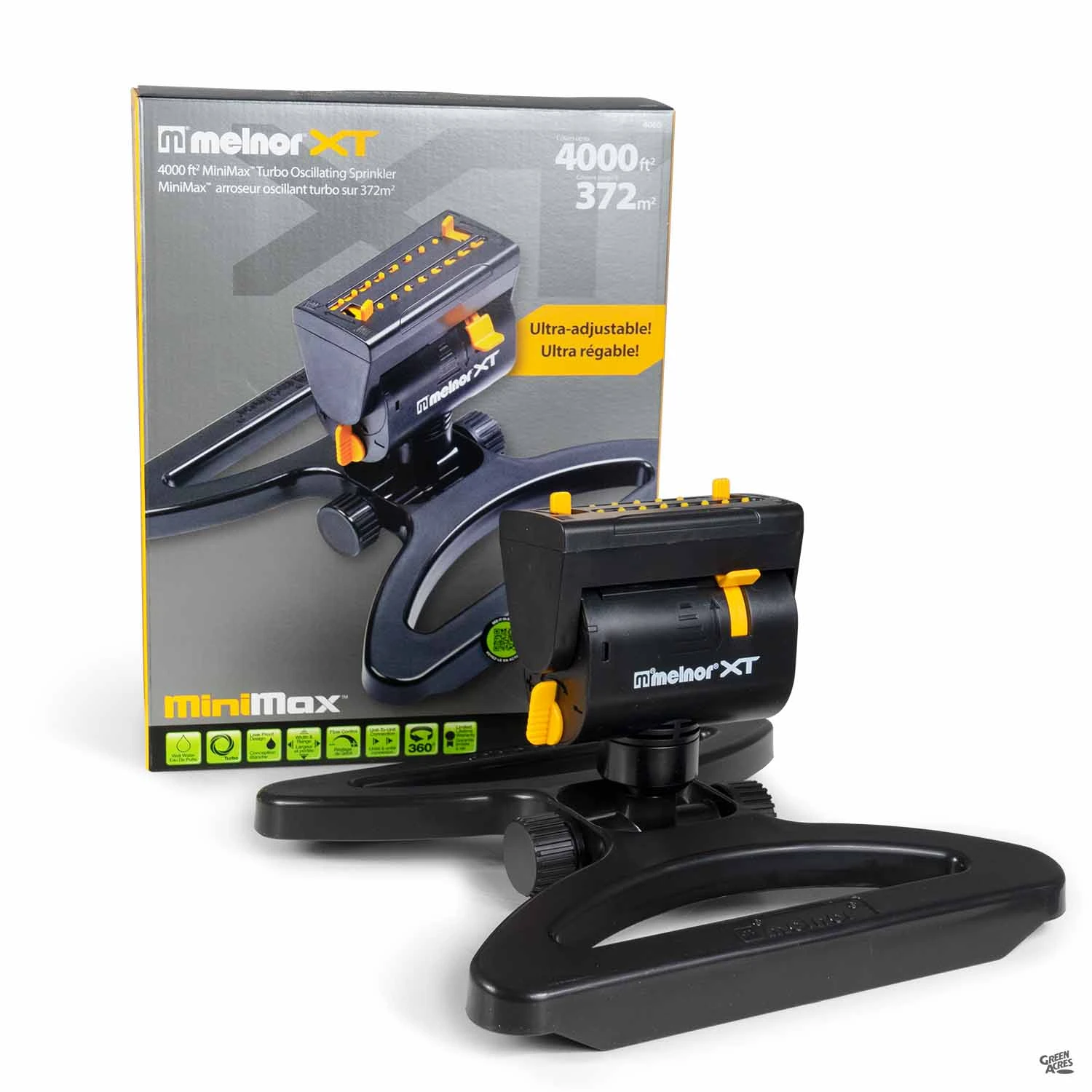 Mini sized oscillator has big reach, covering up to 4,000 sq ft. Adjustments allow control of the coverage shape and overall reach for watering small garden beds up to large lawns. Durable construction and dirt resistant drive ensure long lifespan.
