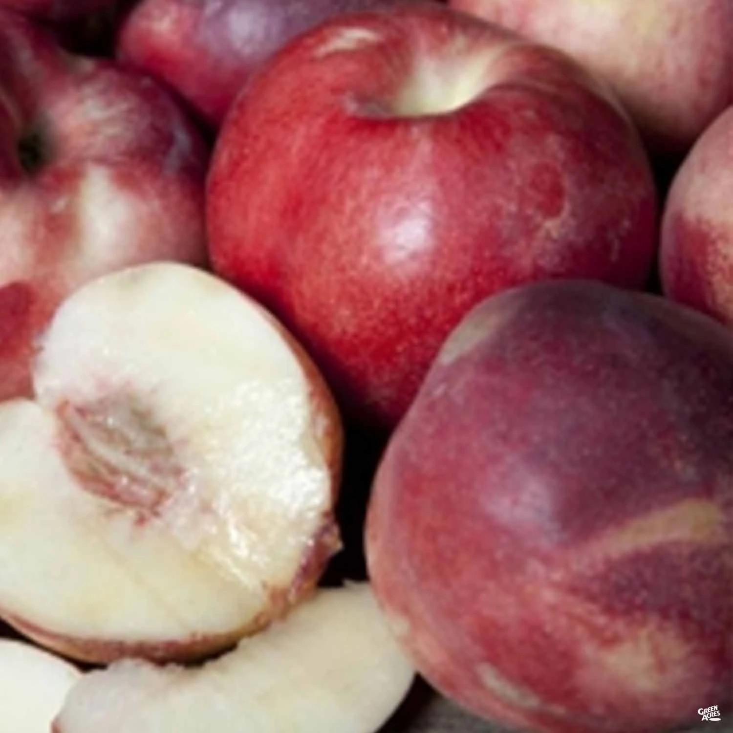 In mid summer, white nectarine variety produces sweet, low acidic fruit with semi-freestone pit. Utilize in desserts or preserves. Great pollinizer for other nectarine varieties.