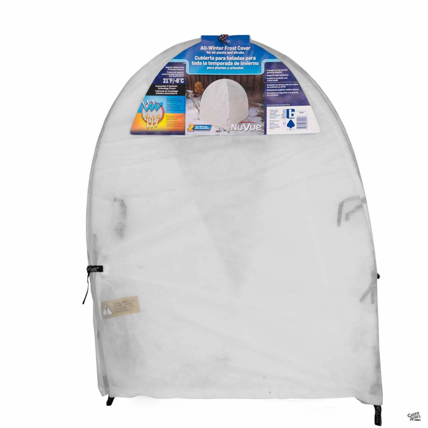 Easy-to-use cover allows for sun, air and moisture penetration while deterring damage from frost and wind. Use to extend spring & fall growing seasons!