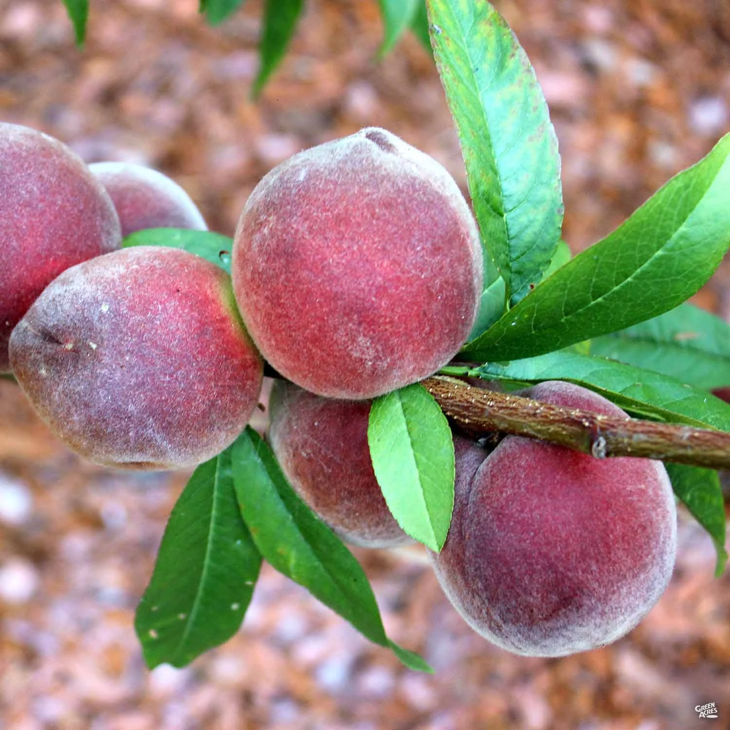 White peach variety adorned with aromatic, juicy peaches in mid summer. Long time favorite does not need pollinization to be fruitful. Low acidic, sweet fruits easily release from freestone pit.