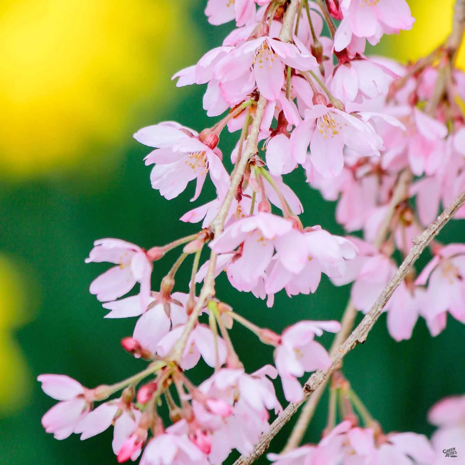 Weeping, deciduous tree withĀ pendulous branches adorned byĀ single, pink flowers in early spring. Peeling, mahogany-red bark provides beautiful contrast to light flowers.Ā Show stopping accent, container or lawn tree.Ā
