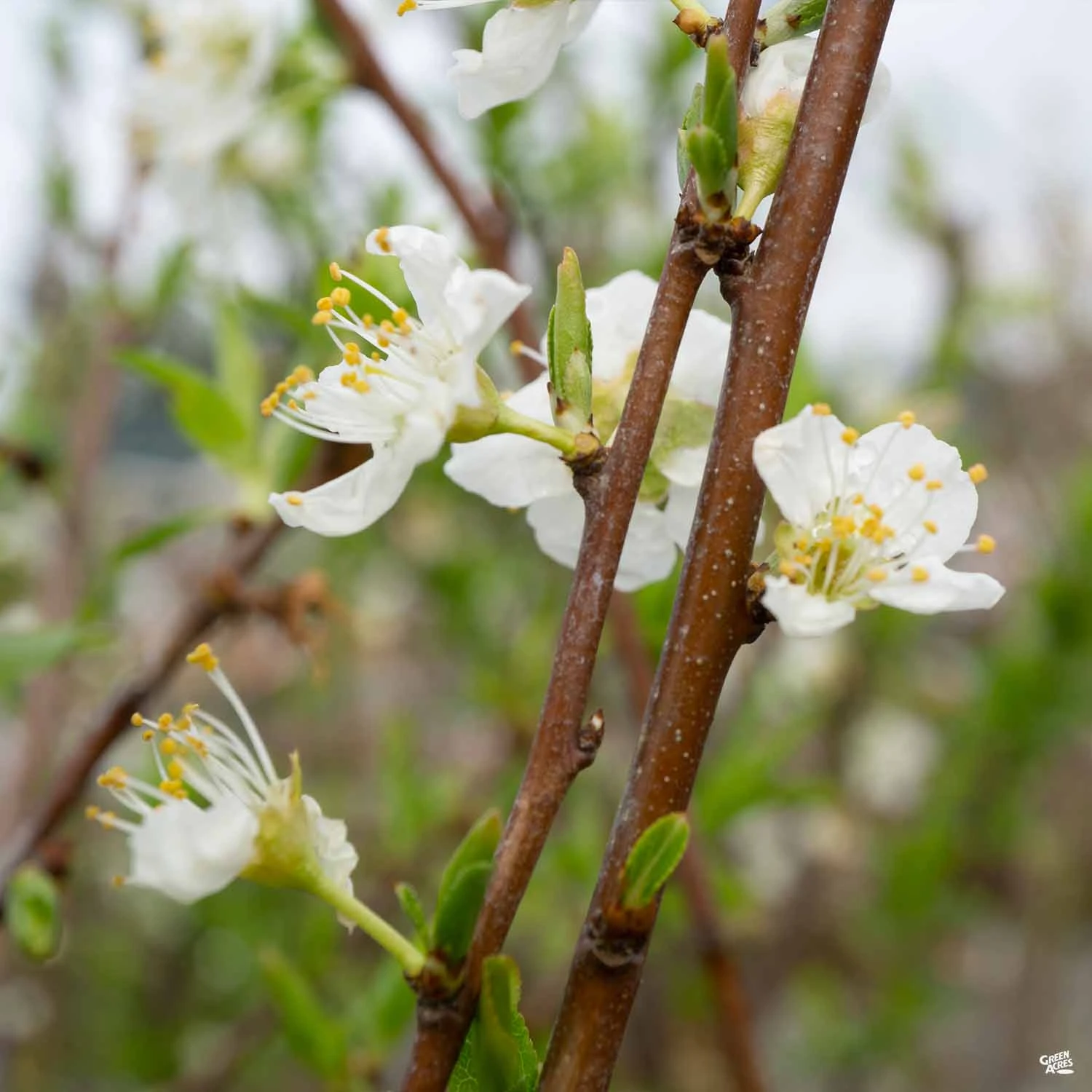 Early summer brings medium sized, reddish-purple plums in abundance. Tangy fruits are excellent dehydrated or used in desserts. Does not need a pollinizer to be fruitful.