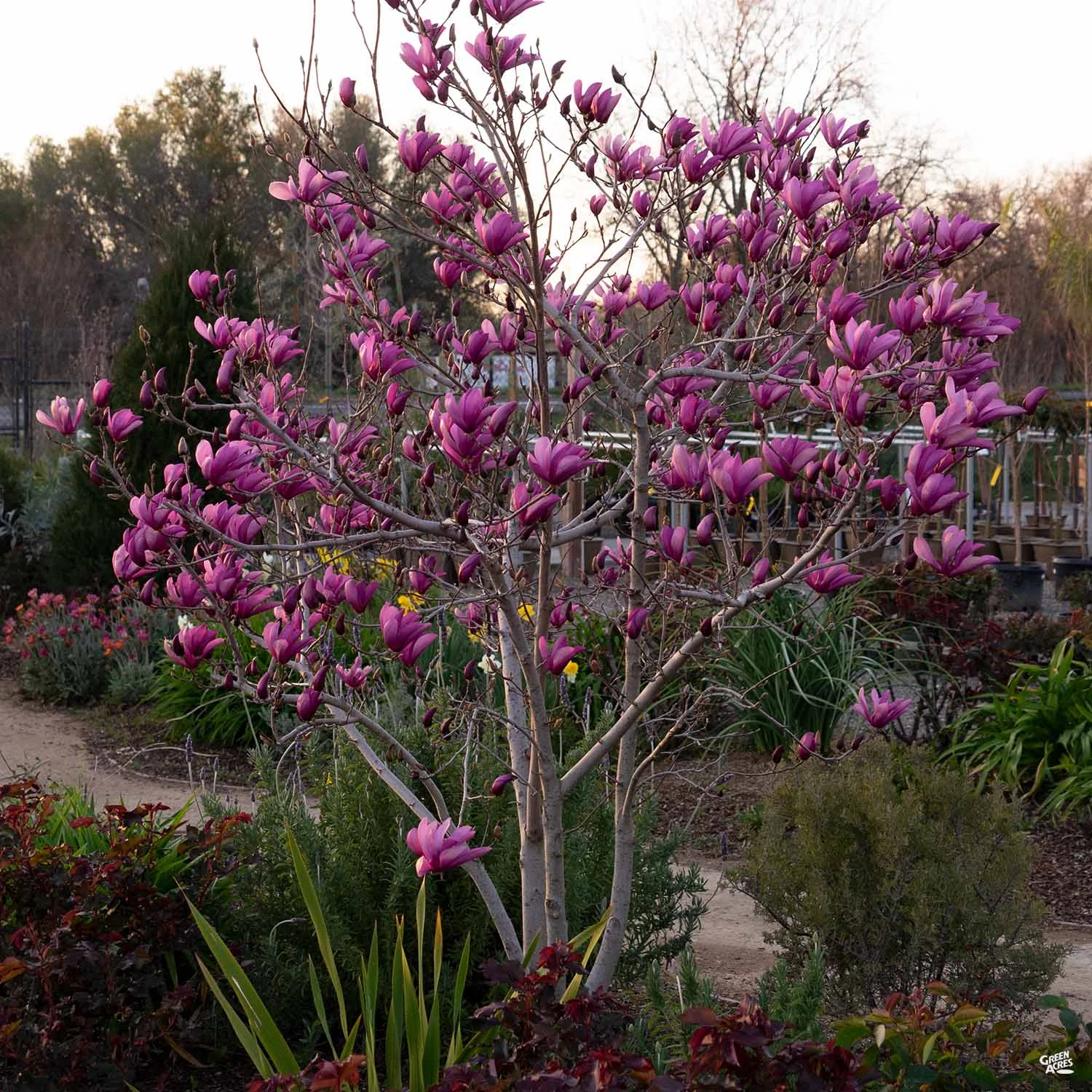 Deciduous shrub or tree has an upright, open habit.Ā In spring, large, fragrant, dark purple-red flowers with pink centers appear before leaves emerge. Makes a beautiful accent or lawn tree.Ā