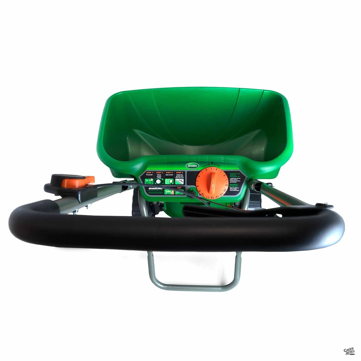 Easy-to-use push spreader is great for distributing grass seed, fertilizer or even ice melting products in winter. EdgeGuard blocks off the right side of the spreader pattern to prevent product from spreading onto non-lawns areas.
