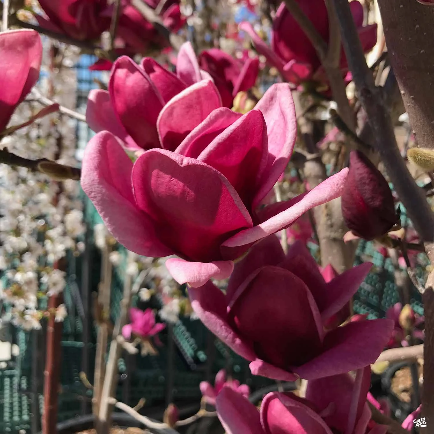 Deciduous shrub or tree is adorned withĀ oval, medium green foliage.Ā Fragrant, black-purple buds open to cup-shaped, dark maroon flowers in spring and summer. Makes a stunning accent, container or border tree.Ā